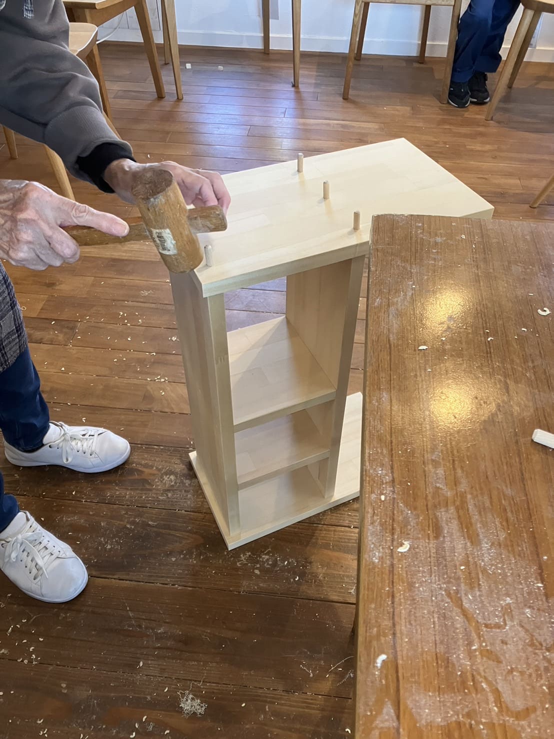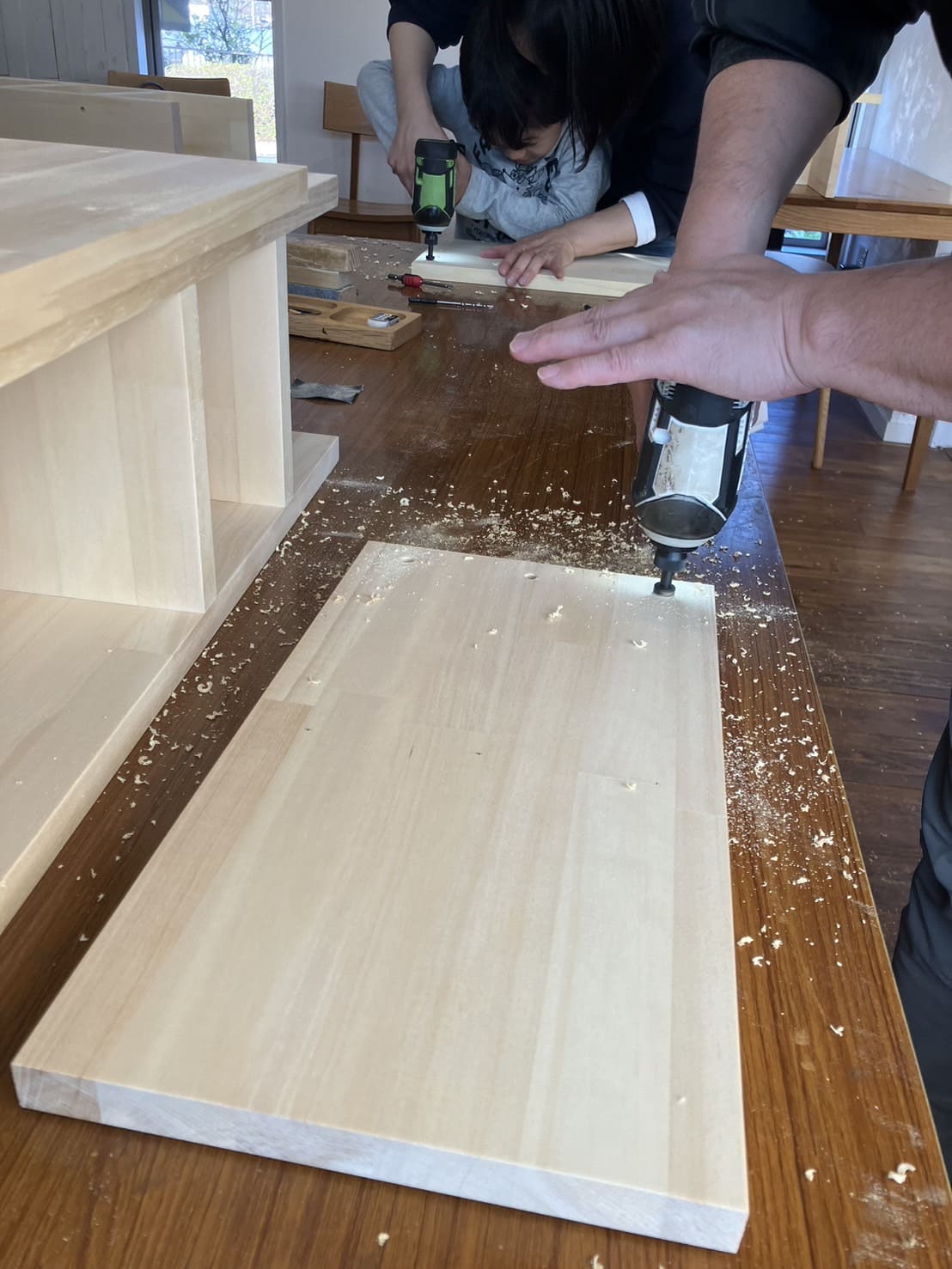 参加者のみなさんは、初めの方こそ慣れない墨付けやインパクトドライバーに