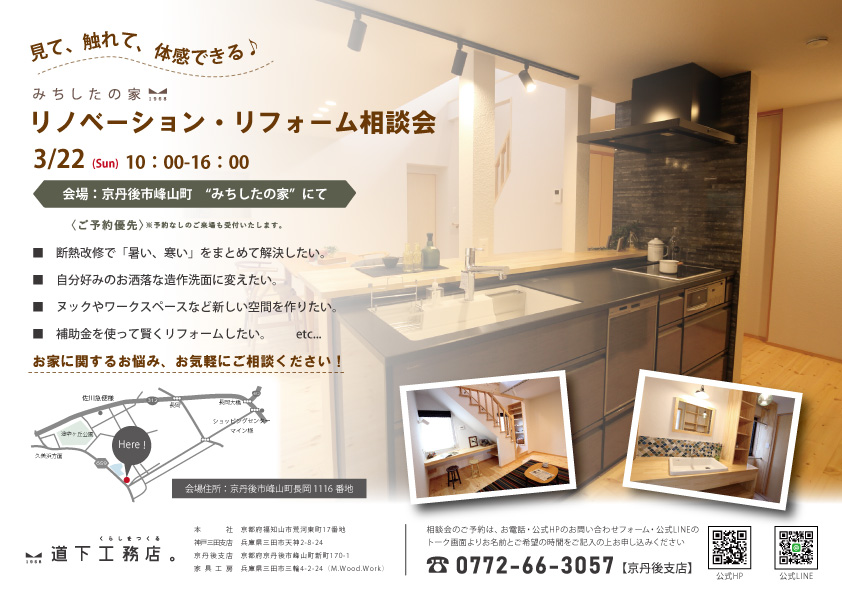 3/22(日)京丹後市峰山町の”みちしたの家”にてリノベーション・リフォーム相談会を開催いたします。