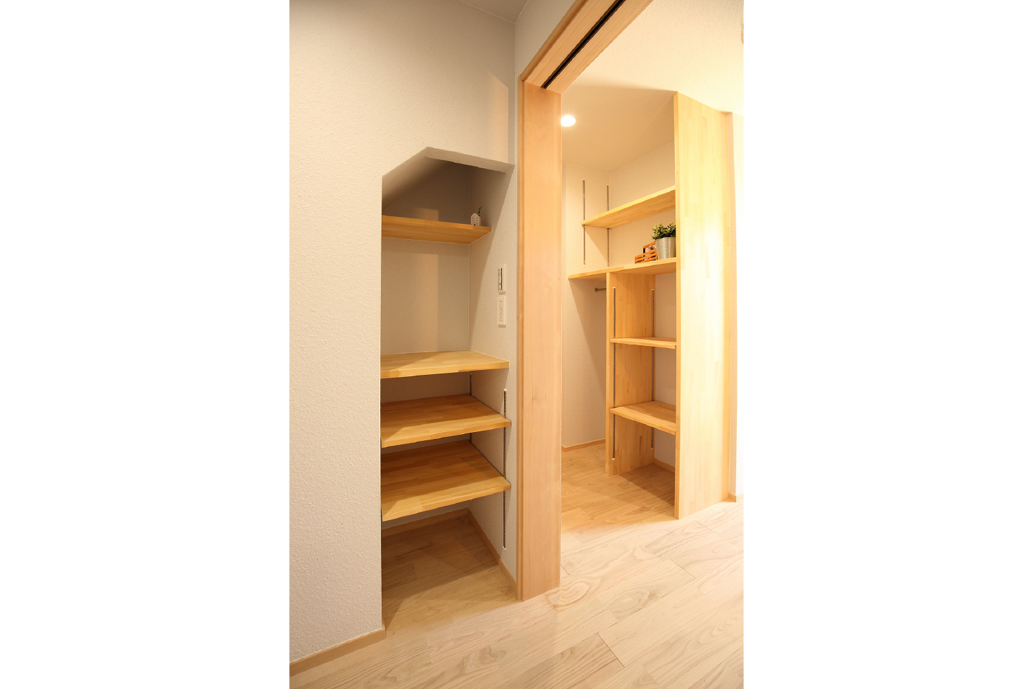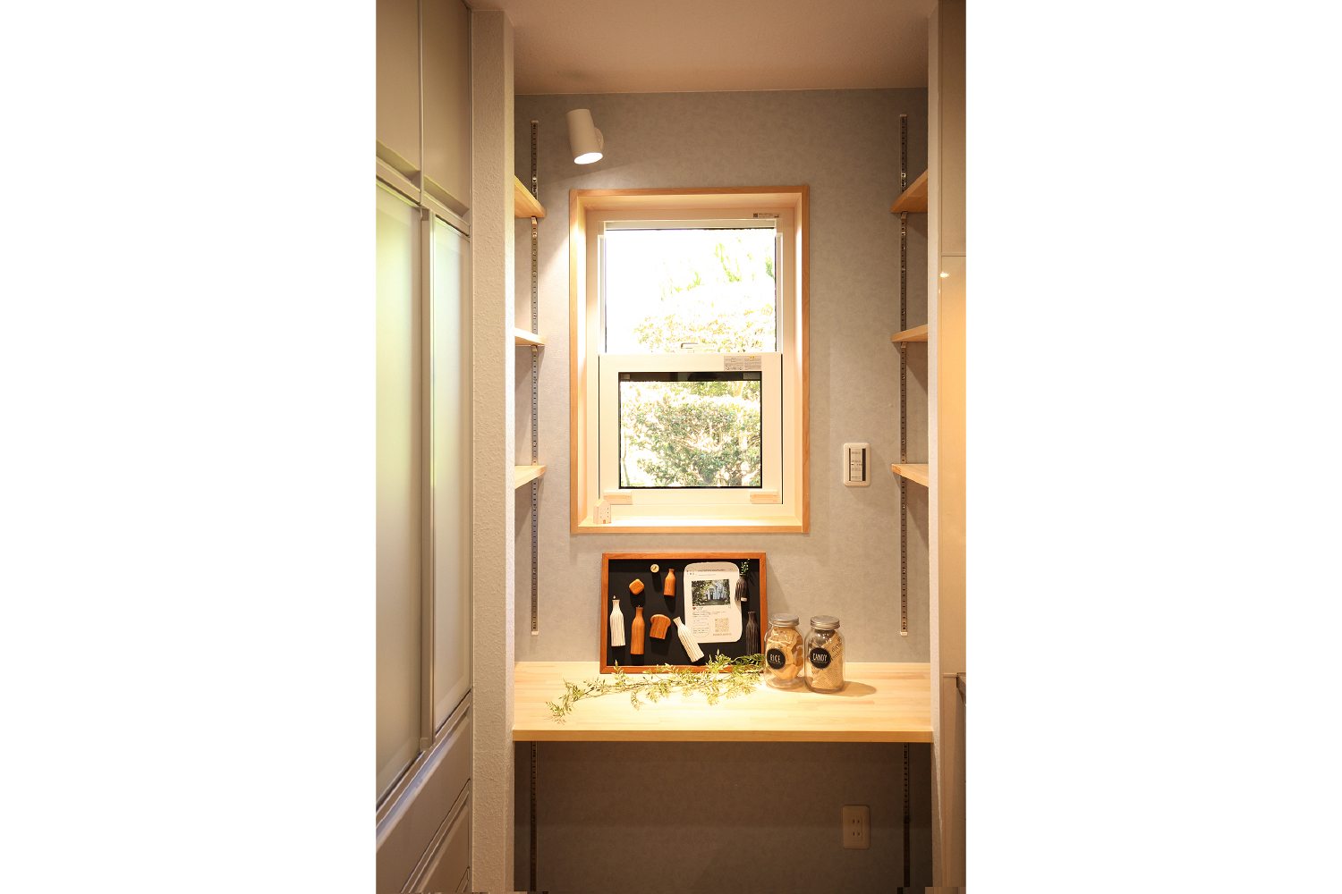 パントリーは水色のクロスを使用し奥様お気に入りの空間に。