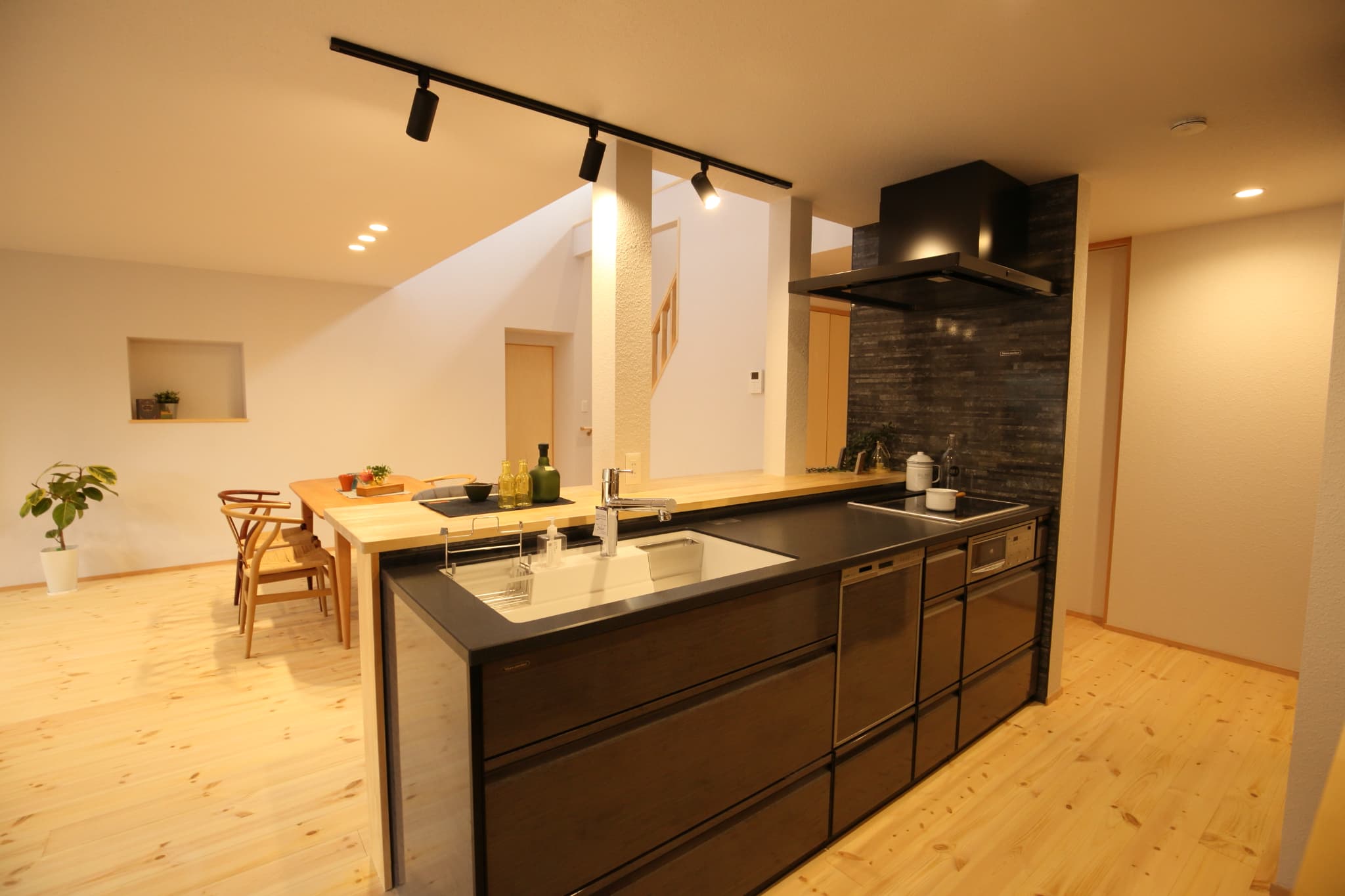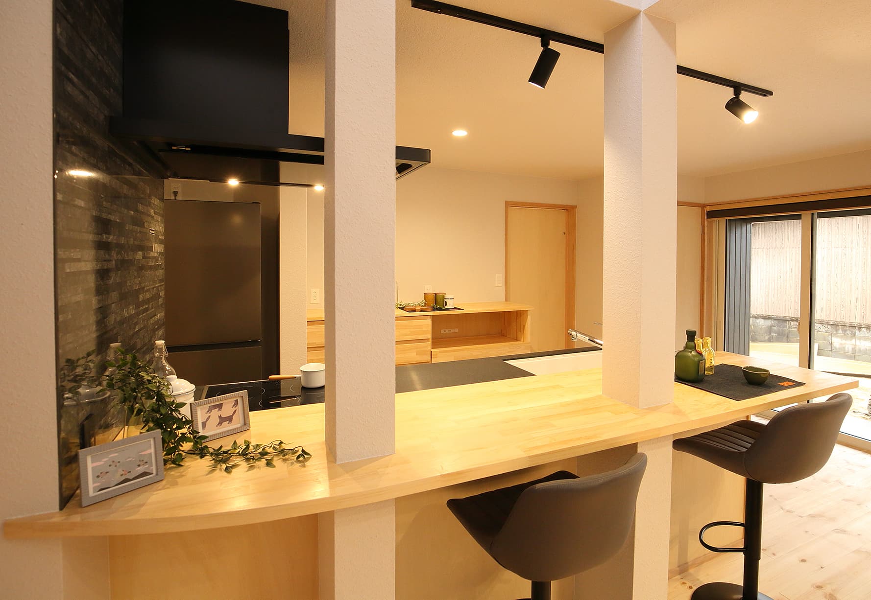 キッチンにはカウンターを設けて、バーのような雰囲気に。