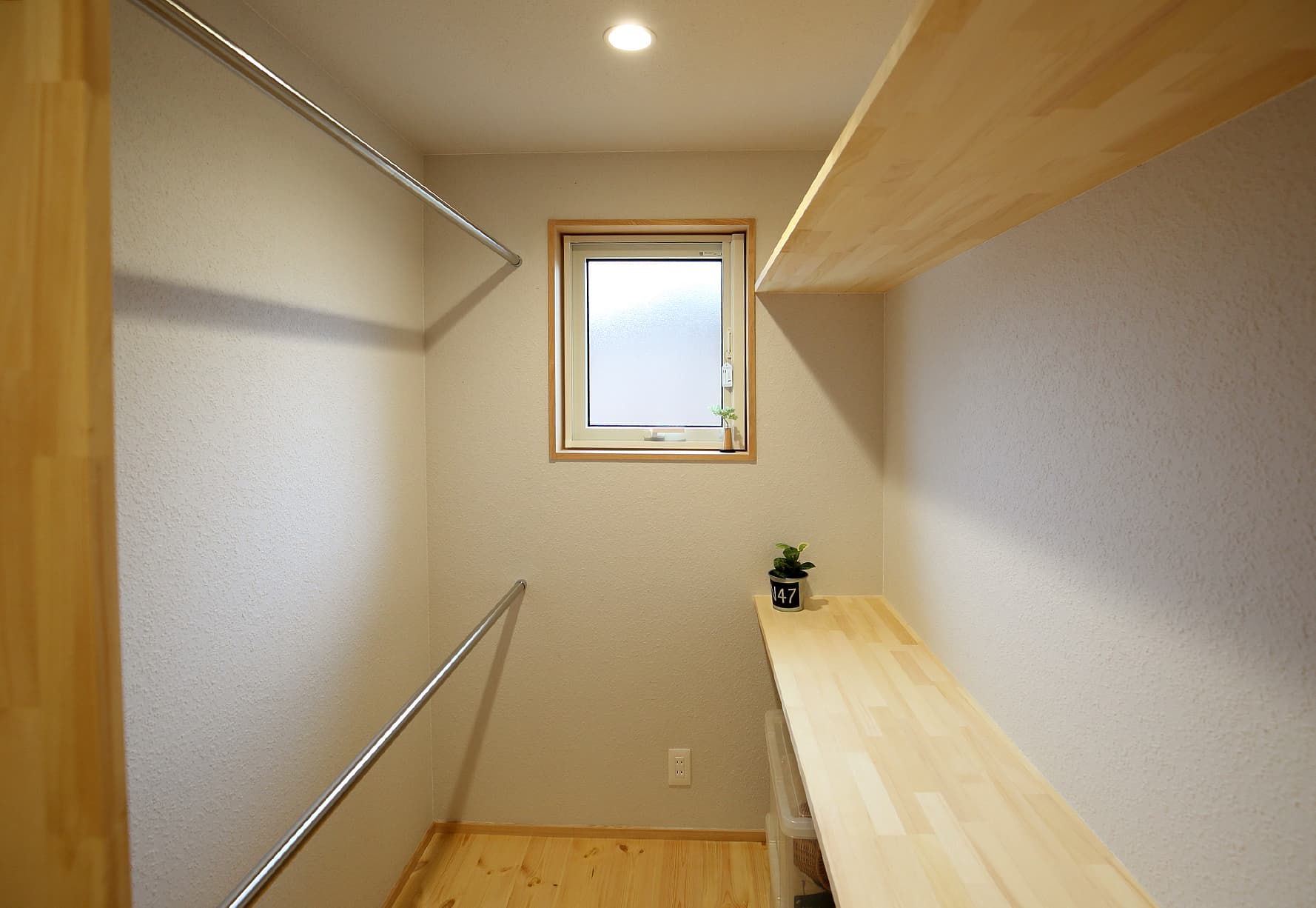 最近人気のお風呂→室内干し→ファミリークローゼットへの収納の動線も確保して、